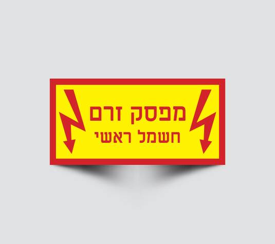• טקסט ברור: הכיתוב “מפסק זרם חשמל ראשי” מודגש בצורה קריאה וברורה.