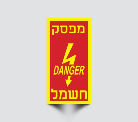 שלט קטן וממוקד המיועד לסימון נקודת מפסק חשמל בלוחות חשמל או על מבנים/קירות – מאפשר זיהוי מהיר של מיקום המפסק לצרכי שימוש יומיומי, תחזוקה או בטיחות.
