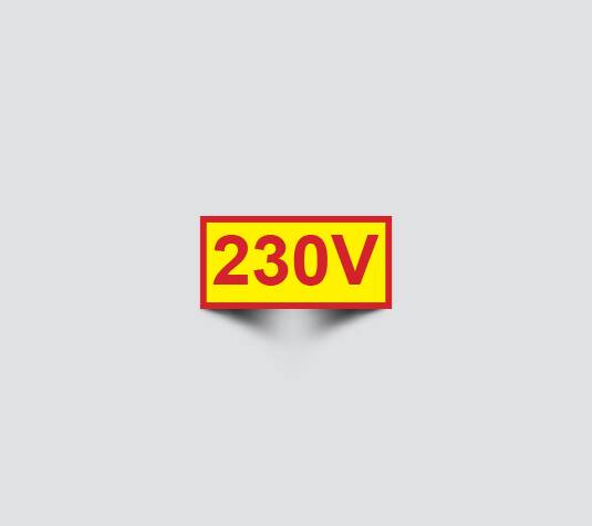 טקסט ברור: מציין 230V באופן חד – מאפשר זיהוי מהיר של מתח ברשת.